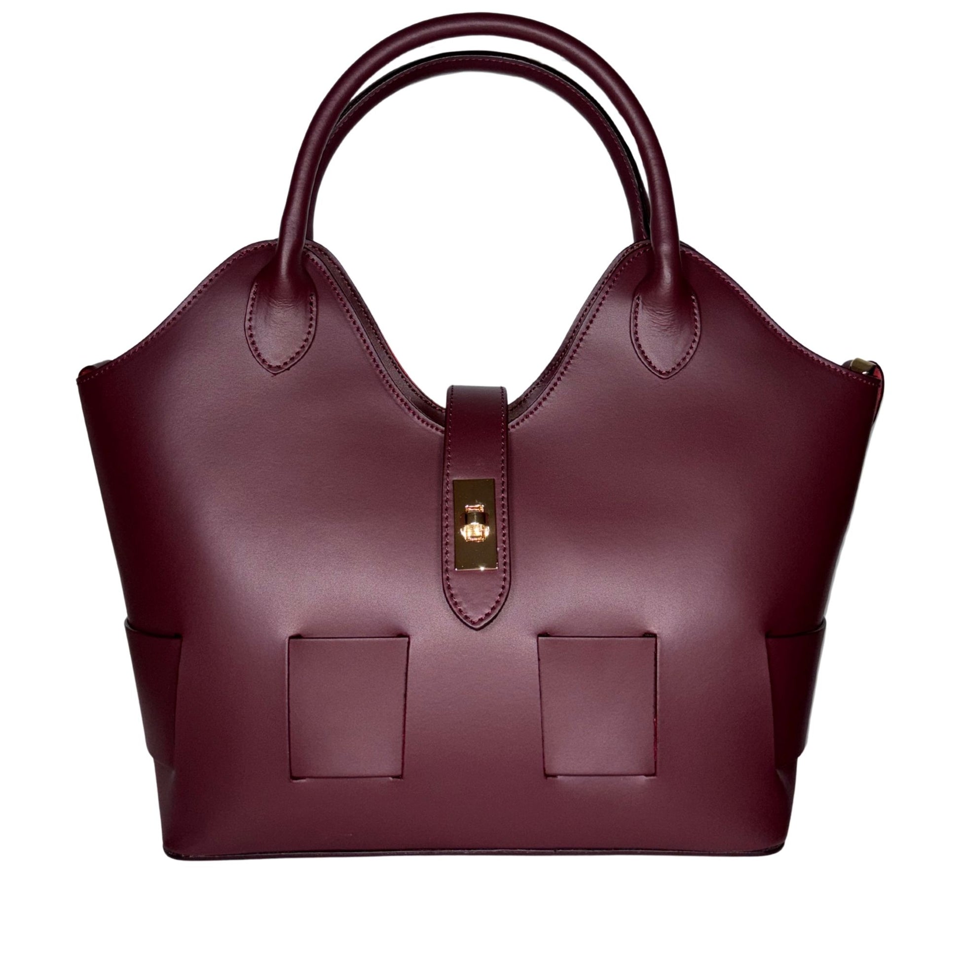 Borsa in pelle Made in Italy con componenti metallici placcati in oro.