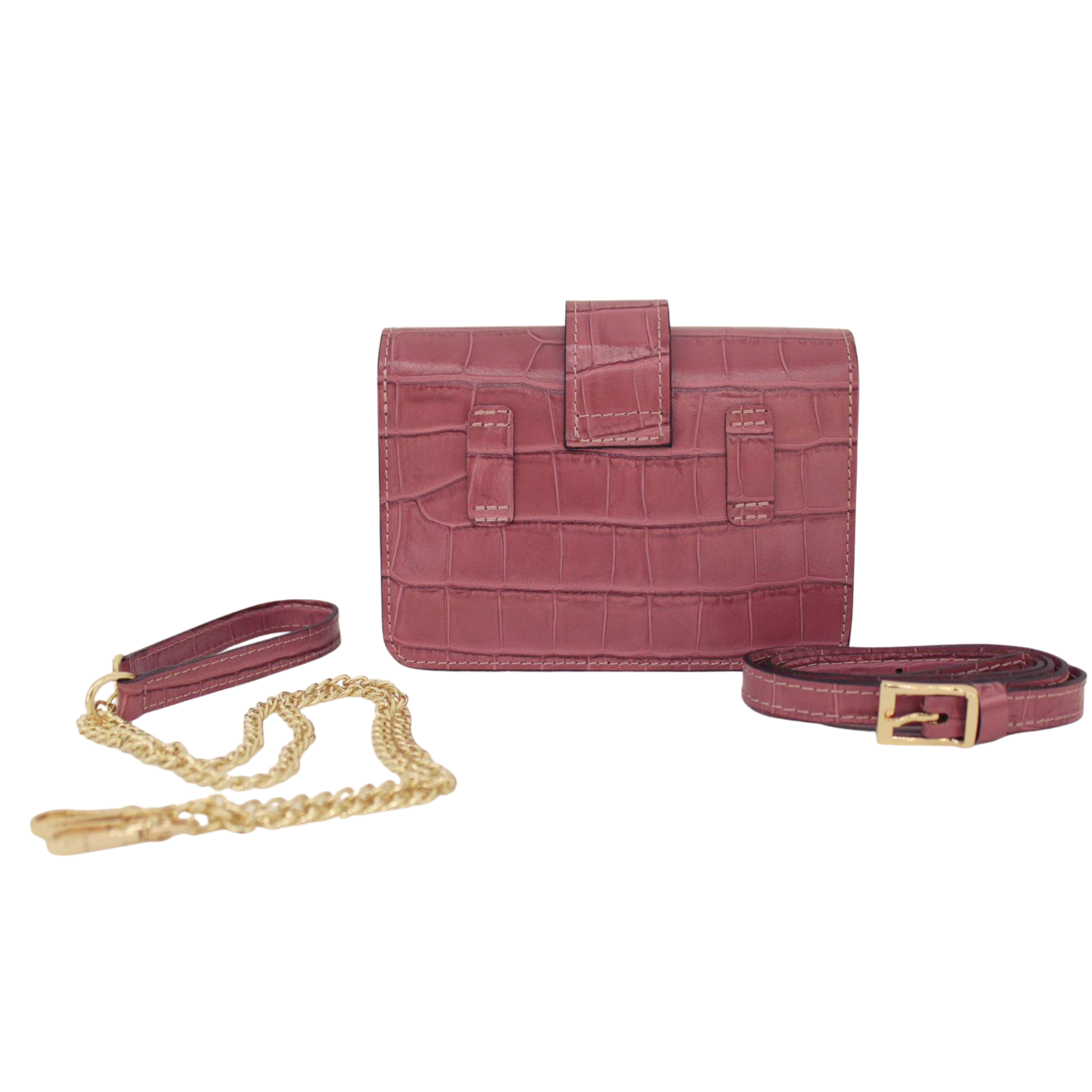 Marsupio in pelle naturale, interamente Made in Italy. Può essere indossato sia come elegante borsa a tracolla, grazie alla catena in metallo placcato oro intrecciato con pelle, sia come classico marsupio, utilizzando la cintura in vera pelle inclusa. Tutti i dettagli metallici sono placcati oro, garantendo una brillantezza e durata: il colore non cambia e non scolorisce nel tempo.