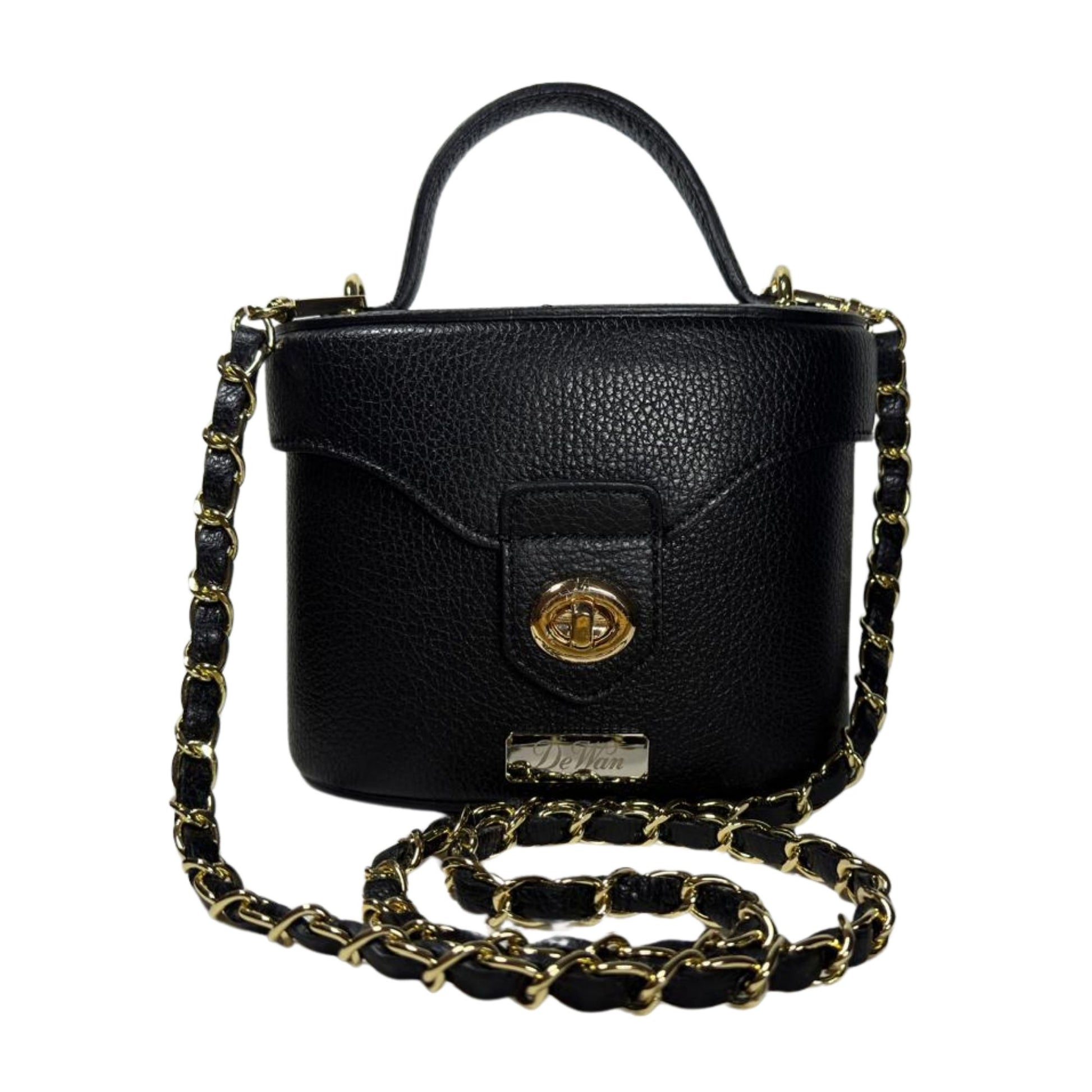 Secchiello in vera pelle Made in Italy, caratterizzato da una tracolla rimovibile a catena con inserto in pelle intrecciata. L’interno è completamente foderato e dotato di una pratica tasca interna, pensata per organizzare gli oggetti essenziali.